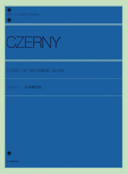 (株)全音楽譜出版社 【9784111030606】【103060】【収録曲】チェルニー 30番練習曲 Op.849 バイエル教則本の次に必ず使用されるこの曲集は、演奏の際に必要な諸技巧を完全に習得する事と、 音楽のメカニズムを学習することを目標としたもので、技術的に最短距離をとれるようになっています。