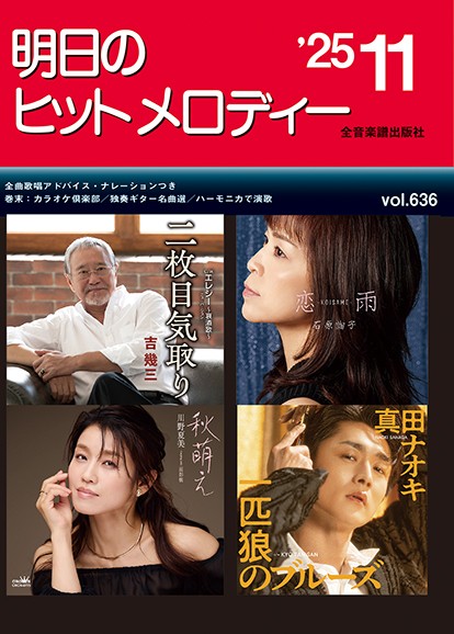 演歌・歌謡曲の最新曲をいち早く集めたカラオケファンのための最新曲集です。全曲に前・間・後奏、オブリガート、テンポ表示、リズム型、冒頭ナレーションと歌唱アドバイスまで入った完璧な楽譜になっています。巻末には楽譜が読めなくてもタブ譜でヒット曲が弾ける『独奏ギター名曲選』とハーモニカの独奏で演歌を楽しめる『ハーモニカで演歌』、分かりやすくて丁寧な指導で新曲が唄える『カラオケ倶楽部』といった色々なコーナーを収録。音楽マメ知識付きです。