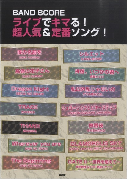 (有)ケイ・エム・ピー 【9784773241631】【4163】【収録曲】僕の名前を/高嶺の花子さん/Dragon Night/TRACE/THANX/Wherever you are/The Beginning/シルエット/拝啓、いつかの君へ/私以外私じゃないの/シュガーソングとビターステップ/熱帯夜/GLAMOROUS SKY/GATE 2 〜世界を超えて〜 ONE OK ROCKやback numberなど大人気バンドの定番曲を収載したボリューム満点のバンドスコアです。