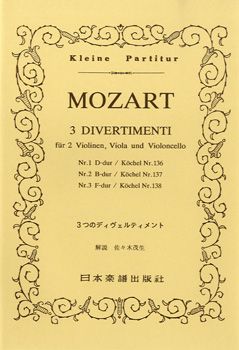 日本楽譜出版社 【9784860600143】【0014】【収録曲】Divertimento 1 KV.136 D−dur/ディヴェルティメント1 ニ長調/Divertimento 2 KV.137 B−dur/ディヴェルティメント2 変ロ長調/Divertimento 3 KV.138 F−dur/ディヴェルティメント3 ヘ長調