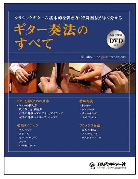 クラシックギターの基本的な弾き方から、必須テクニック、特殊奏法までを、テキスト、写真、譜例、実演 DVDを駆使して解説した奏法マスターのための決定版!フラメンコ奏法もカバーしています。