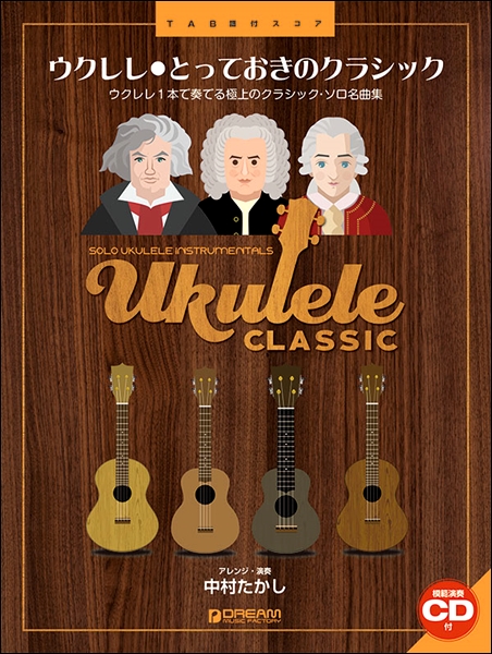 誰もが知っている名曲の数々を中村たかしの選曲&アレンジで収載。ウクレレ初心者の方でも十分に楽しめるようにアレンジ。付属の模範演奏CDはBGMとしても十分堪能出来ます。