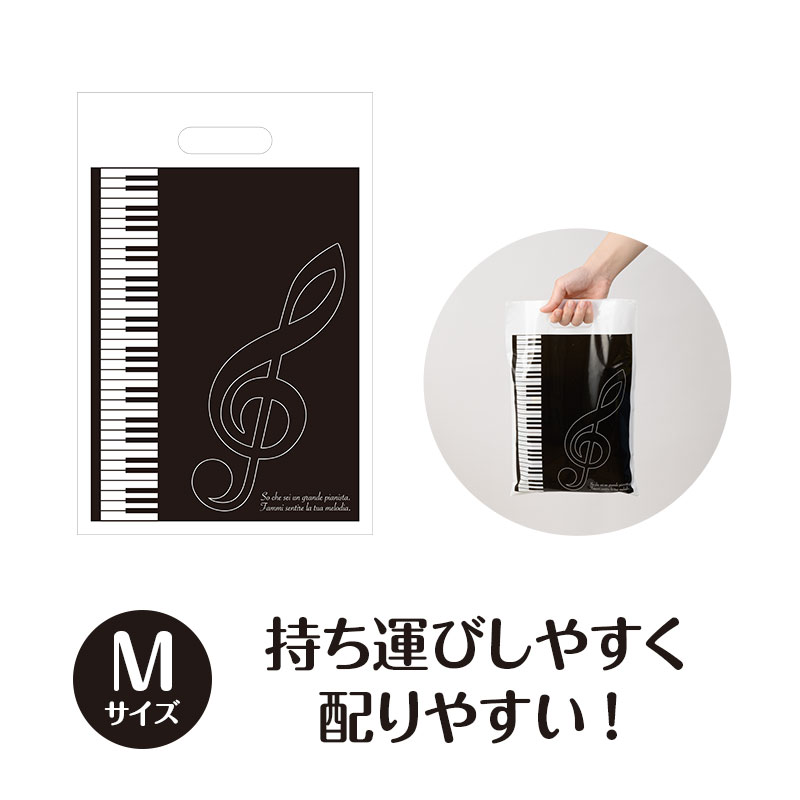 【取寄品】【取寄時、納期1週間〜10日】ラッピング用 マチなし手提げ袋(ト音記号)5枚入りMサイズ