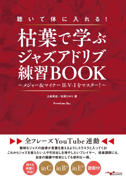 【取寄時、納期10日〜2週間】聴いて体に入れる!枯葉で学ぶジャズアドリブ練習BOOK〜メジャー&マイナーII−V−Iをマスター!〜【全フレーズYouTu