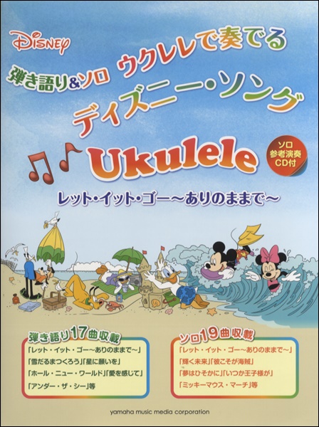 ディズニー映画でおなじみの名曲の数々を、ウクレレで演奏しやすくアレンジして収載。弾き語りとソロ演奏の楽譜を収載し、お好みのスタイルでディズニーソングをお楽しみ頂けます。大人気曲「レット・イット・ゴー」は弾き語りとソロ演奏の両方を収載しておりますので、みんなで歌って楽しむも良し、一人でほっこりとメロディを奏でて楽しむこともできます。ウクレレの温かな音色とディズニーソングの優しいメロディがあなたを癒すこと間違い無し!ソロ演奏については、参考音源CD付なので初心者でも安心してチャレンジできる1冊です。