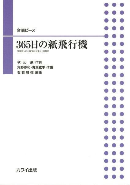 NHKの朝の連ドラ「あさが来た」のテーマソング「365日の紙飛行機」の合唱版。シンプルでとても馴染みやすい原曲を活かし、易しい二部合唱 (部分三部)にアレンジ。みんなで楽しく歌えば、ドラマのヒロインのように元気で前向きになれるかもしれません。ピアノ伴奏付き。女声だけでな く、混声・男声・同声・児童合唱のどの編成(声)でも演奏可能。グレード:初級