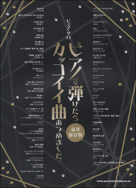 (株)シンコーミュージックエンタテイメント 【9784401032433】【03243】【収録曲】Summer(久石 譲)/Merry Christmas Mr.Lawrence(坂本龍一)/energy flow(坂本龍一)/TAKUMI/匠(松谷 卓)/情熱大陸(葉加瀬太郎)/星に願いを(羽田健太郎)/ピアノ協奏曲「宿命」第一楽章(千住 明)/幻想曲「さくらさくら」(平井康三郎)/手紙〜拝啓十五の君へ〜(アンジェラ・アキ)/千の風になって(秋川雅史)/奏(かなで)(スキマスイッチ)/空から降ってきた少女(映画「天空の城ラピュタ」)/海の見える街(映画「魔女の宅急便」)/あの夏へ(映画「千と千尋の神隠し」)/アシタカとサン(映画「もののけ姫」)/ルパン三世のテーマ ’78(アニメ「ルパン三世」)/残酷な天使のテーゼ(アニメ「新世紀エヴァンゲリオン」)/ライオン(アニメ「マクロスF(フロンティア)」)/GET9(アニメ「攻殻機動隊 STAND ALONE COMPLEX」)/ホール・ニュー・ワールド(映画「アラジン」)/美女と野獣(映画「美女と野獣」)/パート・オブ・ユア・ワールド(映