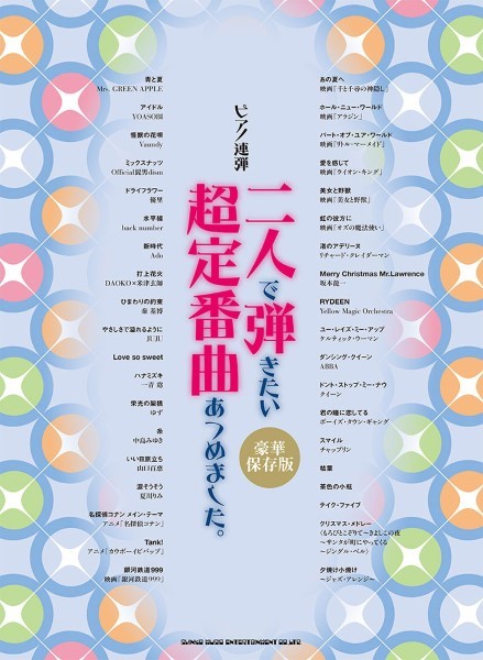 (株)シンコーミュージックエンタテイメント 【9784401043767】【04376】【収録曲】青と夏(Mrs. GREEN APPLE)/アイドル(YOASOBI)/怪獣の花唄(Vaundy)/ミックスナッツ(Official髭男dism)/ドライフラワー(優里)/水平線(back number)/新時代(Ado)/打上花火(DAOKO×米津玄師)/ひまわりの約束(秦 基博)/やさしさで溢れるように(JUJU)/Love so sweet/ハナミズキ(一青 窈)/栄光の架橋(ゆず)/糸(中島みゆき)/いい日旅立ち(山口百恵)/涙そうそう(夏川りみ)/名探偵コナン メイン・テーマ(アニメ「名探偵コナン」)/Tank!(アニメ「カウボーイビバップ」)/銀河鉄道999(映画「銀河鉄道999」)/あの夏へ(映画「千と千尋の神隠し」)/ホール・ニュー・ワールド(映画「アラジン」)/パート・オブ・ユア・ワールド(映画「リトル・マーメイド」)/愛を感じて(映画「ライオン・キング」)/美女と野獣(映画「美女と野獣」)/虹の彼方に(映画「オズの魔法使い」)/渚のアデリーヌ(リチャード・クレイダーマン