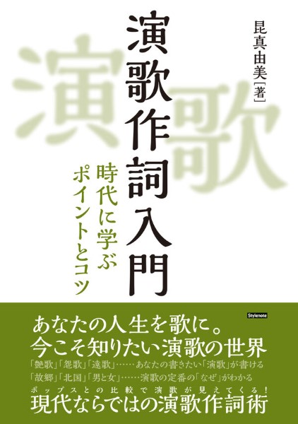 スタイルノート 【0217】 演歌の歌詞が書けるようになる、実践的な作詞入門書。演歌が流行した時代と背景、ジャンルの立ち位置などを踏まえ、歴史を紐解きながら、演歌の歌詞の特徴を学ぶ。ポップスを中心に作詞をする現役の作詞家・作詞講師である著者が、ポップスとの違いを交えつつ、演歌特有の作詞方法を解説。現代の視点から新たな切り口で作詞術を展開する。「プロット作成」や「推敲」、効果的な「表現技法」など、演歌の作詞に欠かせないポイントのほか、演歌の3つの要素「艶歌」「縁歌」「俺歌」と、3つのタイプ「遠歌」「炎歌」「怨歌」を軸にした、著者ならではの作詞へのアプローチも紹介。演歌の歴史を学びながら演歌の作詞術が身につく一冊。