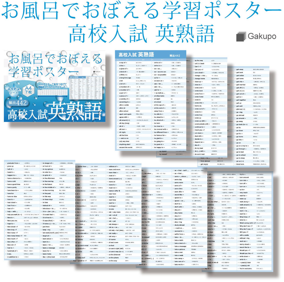 Gakupo お風呂でおぼえる学習ポスター 高校入試 英熟語 頻出442 A4ポスター7枚セット