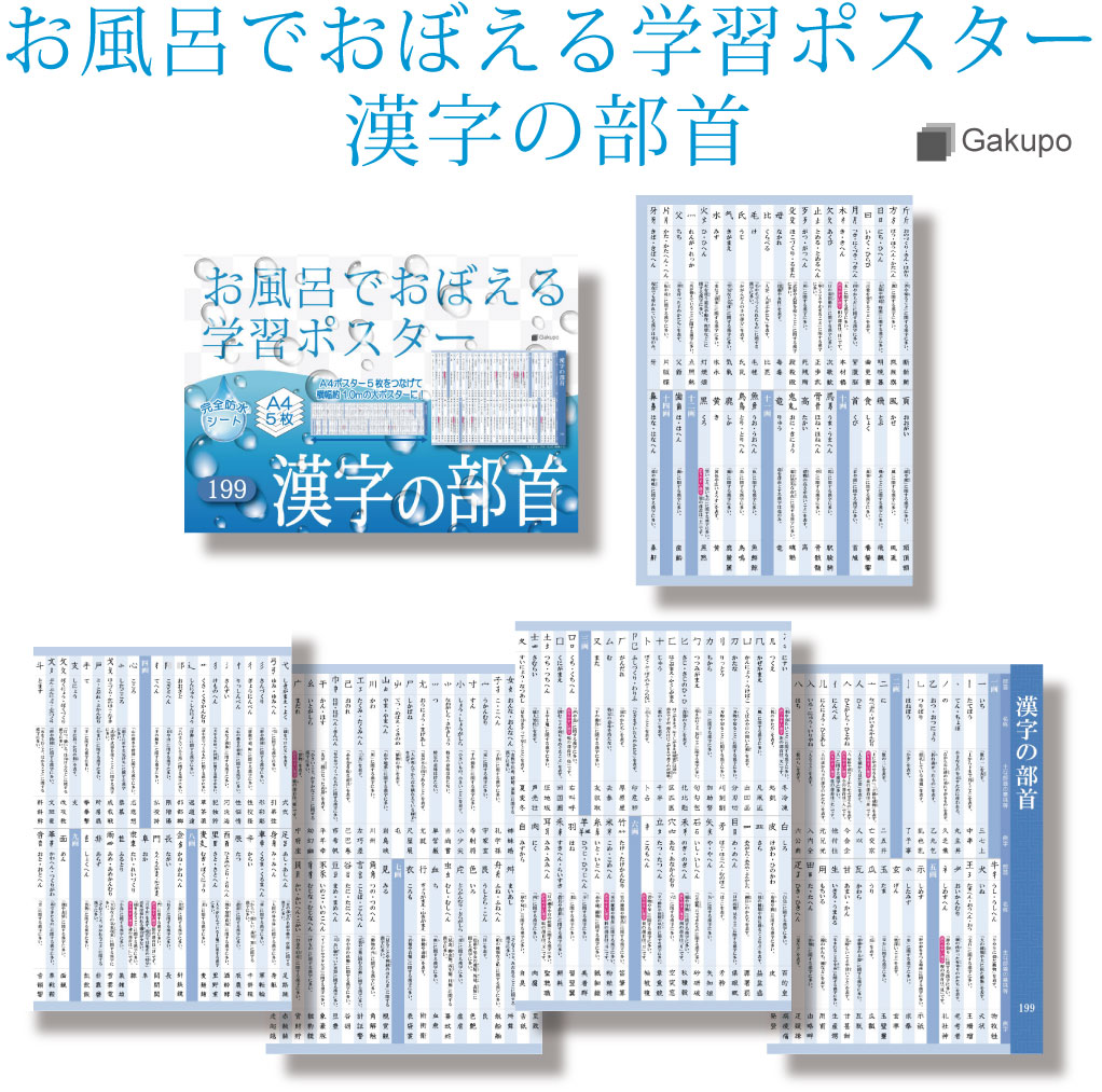 ![]() 子供部屋に貼ってもOK またお風呂だけでなく、トイレや洗面所、お部屋の壁に貼ってご使用いただくことも可能です。 防水フィルムなので、紙のポスターよりも破れにくいため、長く使用できるのもこのポスターの良いところ。 A4サイズなのでカバンに入れて持ち運ぶこともできます。 ちょっとした隙間時間に、授業の予習として使ったり、テスト前の復習などに使ったりするのもおすすめです。 ![]() お子さんの成績アップ 毎日のお風呂時間を有効活用し、無理なく勉強する習慣を身につけて、お子さんの成績アップを目指してみませんか。 お風呂でおぼえる学習ポスターシリーズ活用例1 苦手な教科に興味を持つきっかけづくりに! ![]() お風呂でおぼえる学習ポスターシリーズ活用例2 受験モードになるきっかけづくりに! ![]() |