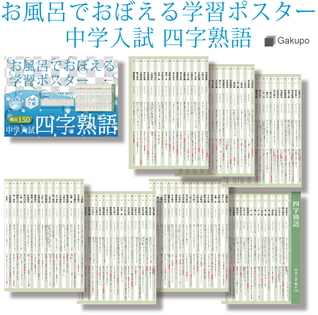 Gakupo お風呂でおぼえる学習ポスター 中学入試 四字熟語 頻出150 A4ポスター7枚セット 中学受験 国語 防水 教材
