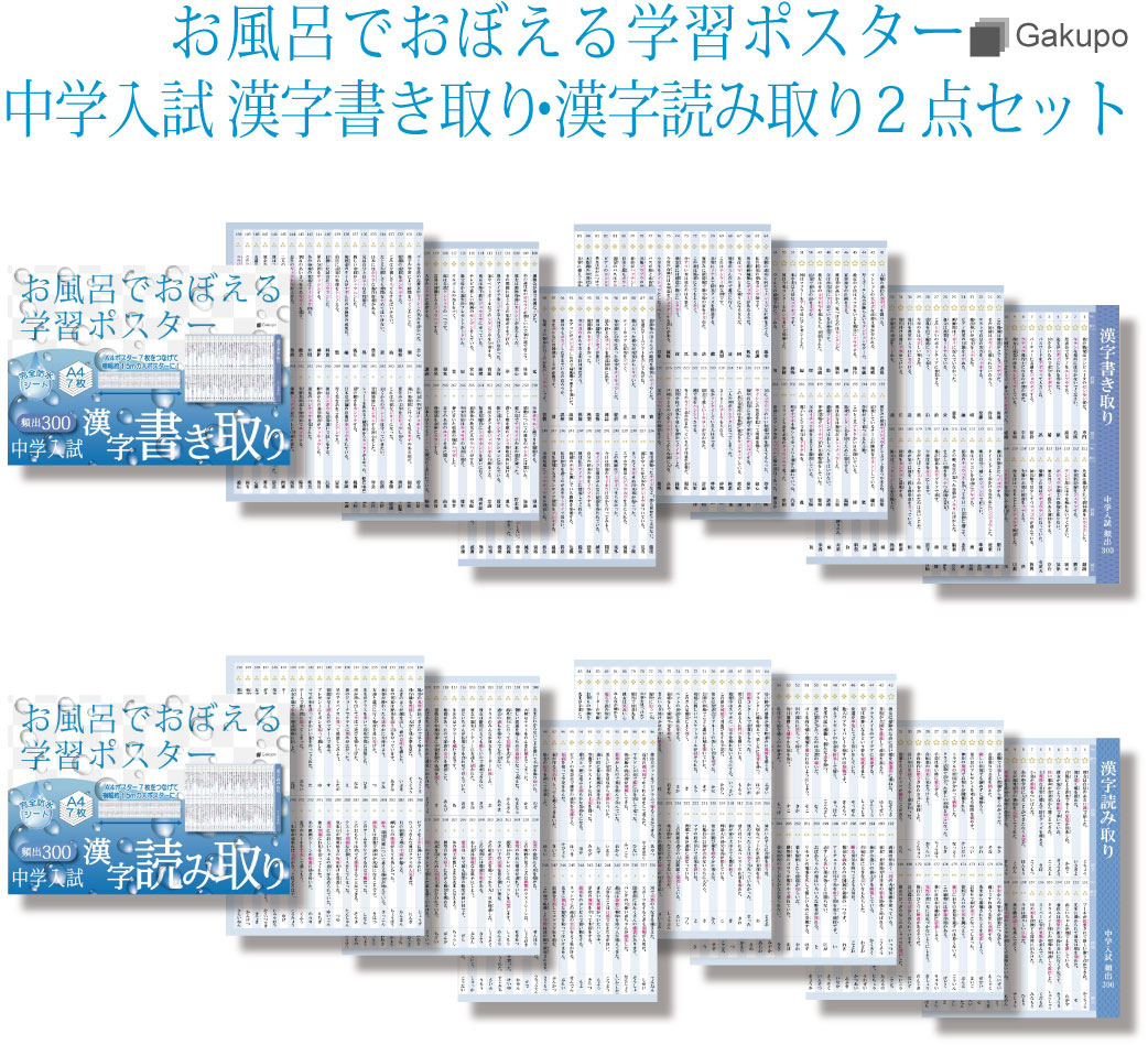 ![]() 子供部屋に貼ってもOK またお風呂だけでなく、トイレや洗面所、お部屋の壁に貼ってご使用いただくことも可能です。 防水フィルムなので、紙のポスターよりも破れにくいため、長く使用できるのもこのポスターの良いところ。 A4サイズなのでカバンに入れて持ち運ぶこともできます。 ちょっとした隙間時間に、授業の予習として使ったり、テスト前の復習などに使ったりするのもおすすめです。 ![]() お子さんの成績アップ 毎日のお風呂時間を有効活用し、無理なく勉強する習慣を身につけて、お子さんの成績アップを目指してみませんか。 お風呂でおぼえる学習ポスターシリーズ活用例1 苦手な教科に興味を持つきっかけづくりに! ![]() お風呂でおぼえる学習ポスターシリーズ活用例2 受験モードになるきっかけづくりに! ![]() |
