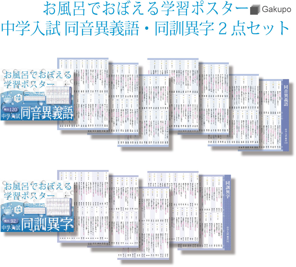 ![]() 子供部屋に貼ってもOK またお風呂だけでなく、トイレや洗面所、お部屋の壁に貼ってご使用いただくことも可能です。 防水フィルムなので、紙のポスターよりも破れにくいため、長く使用できるのもこのポスターの良いところ。 A4サイズなのでカバンに入れて持ち運ぶこともできます。 ちょっとした隙間時間に、授業の予習として使ったり、テスト前の復習などに使ったりするのもおすすめです。 ![]() お子さんの成績アップ 毎日のお風呂時間を有効活用し、無理なく勉強する習慣を身につけて、お子さんの成績アップを目指してみませんか。 お風呂でおぼえる学習ポスターシリーズ活用例1 苦手な教科に興味を持つきっかけづくりに! ![]() お風呂でおぼえる学習ポスターシリーズ活用例2 受験モードになるきっかけづくりに! ![]() |