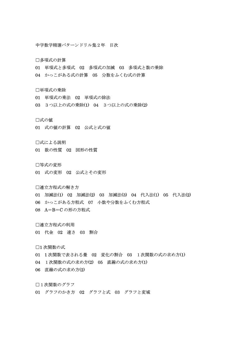 01 加減法(1) 02 加減法(2) 03 加減法(3) 04 代入法(1) 05 代入法(2)