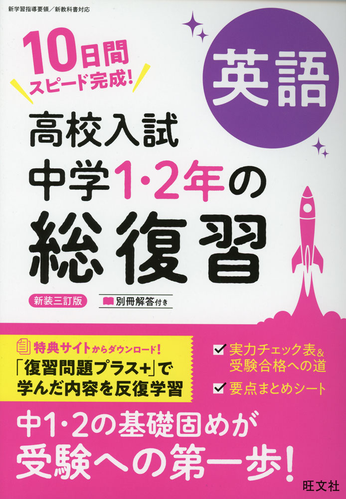 中学1・2年の学習内容を10日間でおさらいできる問題集。「基礎問題」「基礎力確認テスト」の2ステップ構成。巻末に総復習テスト2回分を収録。要点まとめシートつき。