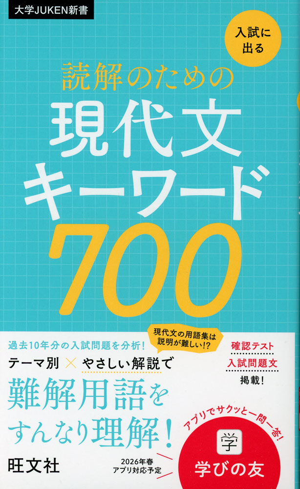 過去10年分の大学入試問題を分析し、頻出用語を中心に現代文には欠かすことのできない重要な700語を掲載。出題頻度を★の数で表記。700用語を20章に分類して掲載。グループで覚える章、芸術/哲学/言語/科学などのテーマ別で覚える章など、関連した用語をまとまりで覚えることによって、理解した内容をしっかりと定着させることができる。確認テストつき。