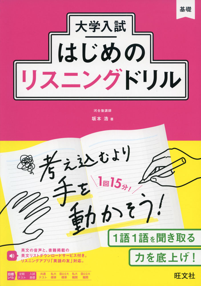 1回約15分、「書く・聞く」に集中できるシンプルなドリル。要点を繰り返し練習できる。答えがすぐに確認できて復習しやすい。各章のイントロダクションや各課のポイント解説で基本的な知識をまとめて確認できる。基礎レベルのオリジナル英文でわかりやすい。「入試実戦演習問題」を掲載。