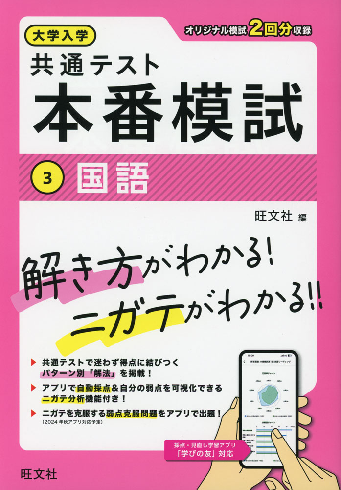 共通テストの基本的な「解き方」を学び、自分の「ニガテ」を分析して克服することで、試験本番で点数が取れるようになることを目的とした問題集。オリジナル模試2回分を収録。パターン別「解法」を掲載。