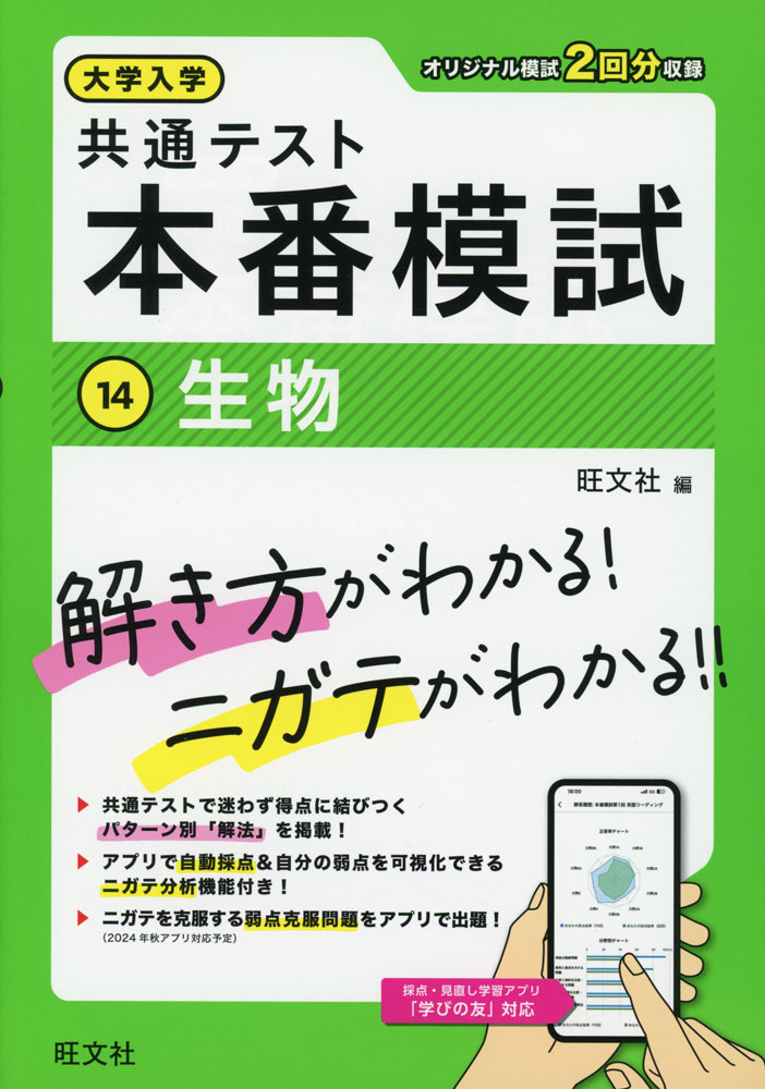 共通テストの基本的な「解き方」を学び、自分の「ニガテ」を分析して克服することで、試験本番で点数が取れるようになることを目的とした問題集。オリジナル模試2回分を収録。パターン別「解法」を掲載。