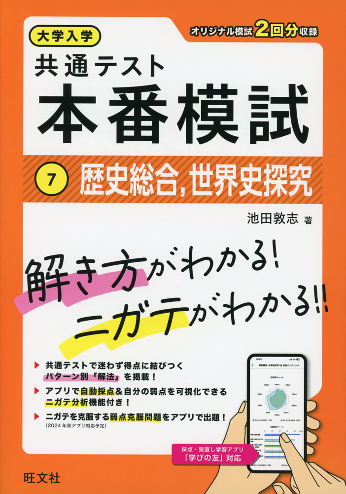 共通テストの基本的な「解き方」を学び、自分の「ニガテ」を分析して克服することで、試験本番で点数が取れるようになることを目的とした問題集。オリジナル模試2回分を収録。パターン別「解法」を掲載。