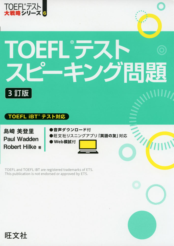 TOEFL iBTスピーキングセクションの問題の構成、出題形式、評価ポイントなどを解説。解答における重要ポイント、重要表現、解答の組み立て方、メモのとり方、自分の解答と良い解答例の比較、解答の改善方法などを13のSTEPで学習。基礎的な力をつけた後は、実戦問題に取り組み、自分の解答と模範解答を比較するとともに、与えられた不十分な解答を改善することにより、解答する力を伸ばす。最後に、設問形式やレベルなど、実際の試験に限りなく近いスピーキング問題を2セット解き、ここまでに自分が身につけた力を確認する。目標スコア80〜100。