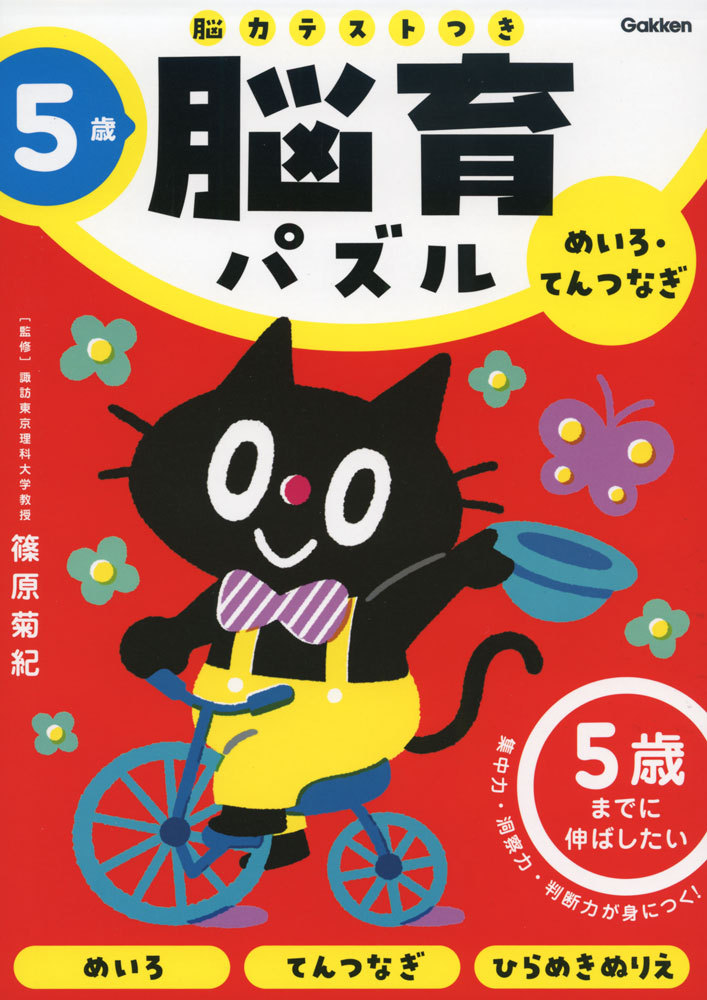 解くと絵が現れる、めいろ・てんつなぎ・ひらめきぬりえで、5歳までに伸ばしたい脳の部位を鍛える。楽しくパズルを解きながら、文字や数も同時に学べ、「頭を使うことが好きな子」を育てる。脳力テストつき。