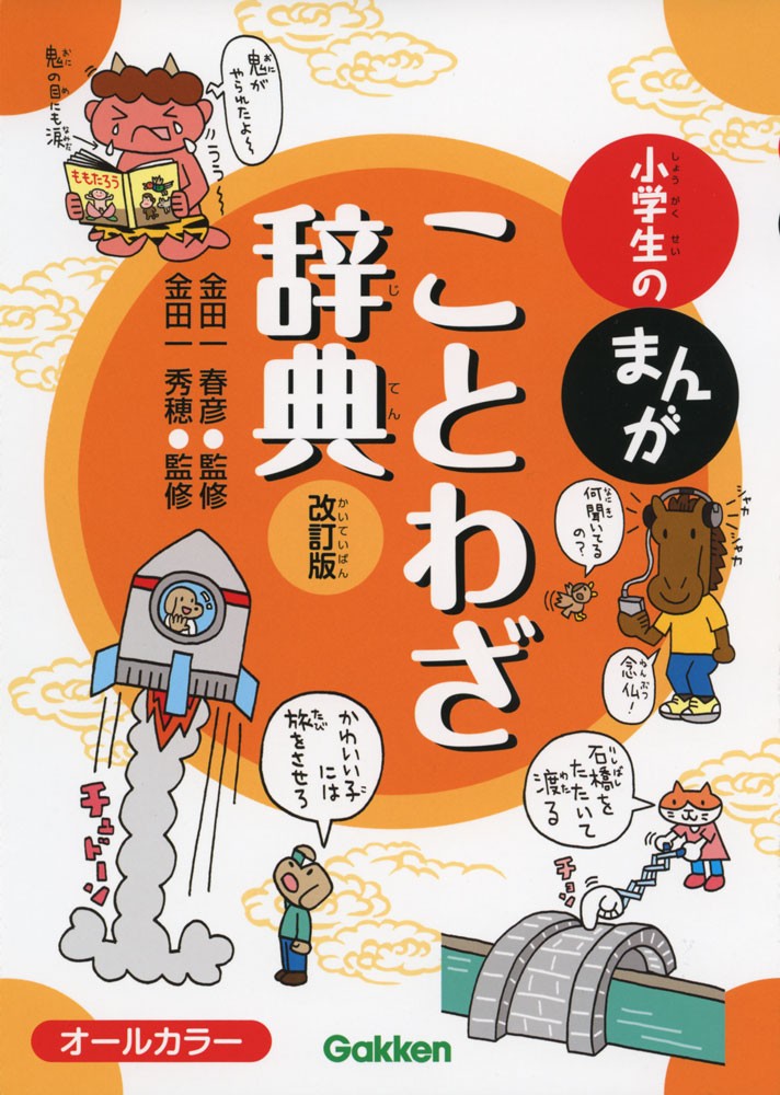 ことわざ、慣用句、故事成語、四字熟語を、あいうえお順に取り上げ、ことばの意味を解説。4コマまんがで、楽しくおぼえられる。収録語数約600。