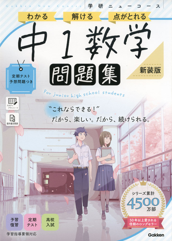 基礎〜標準〜高校入試レベルの問題まで、豊富に掲載しているので、しっかり問題演習できる。ステップ式の構成で無理なく実力アップ。「定期テスト予想問題」は、制限時間と配点つき。スタディプランシートでスケジューリングもサポート。