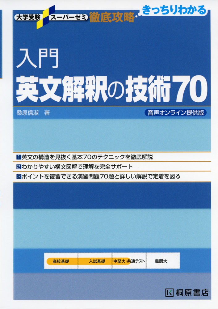 英文の構造を見抜く基本70のテクニックを徹底解説。わかりやすい構文図解で理解を完全サポート。ポイントを復習できる演習問題70題と詳しい解説で定着を図る。