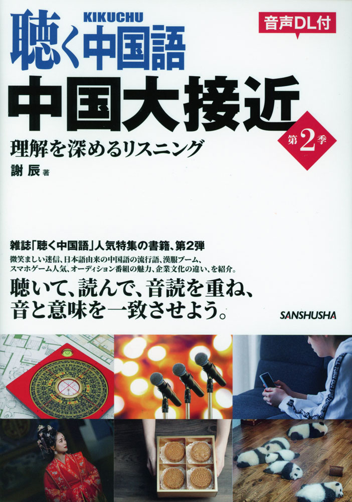 微笑ましい迷信、日本語由来の中国語の流行語、漢服ブーム、スマホゲーム人気、オーディション番組の魅力、企業文化の違い、を紹介。聴いて、読んで、音読を重ね、音と意味を一致させよう。