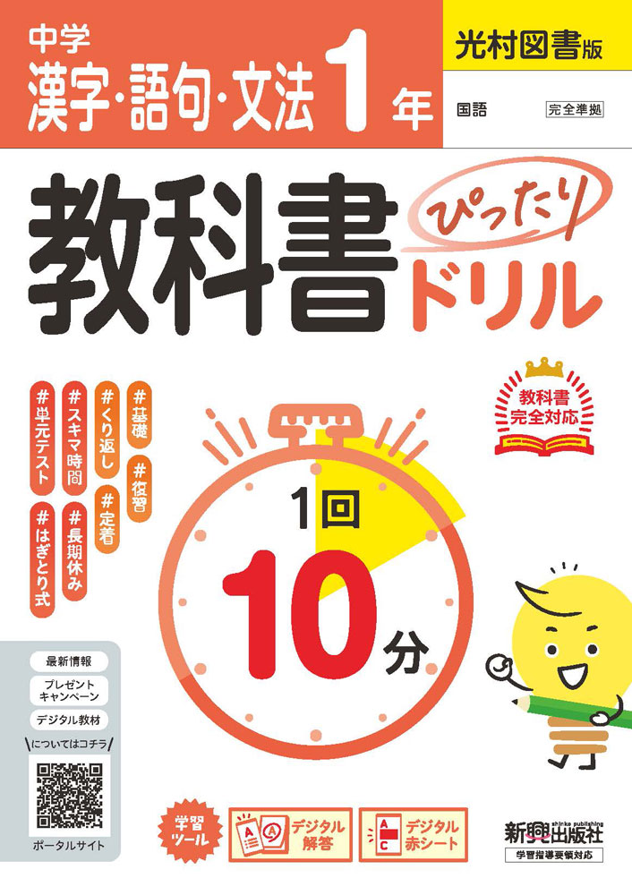 教科書に完全対応の書き込み式ドリル。日常学習から長期休み中の予習・復習、単元テストや定期テストの直前対策など、幅広く活用できる。「1回10分」で、スキマ時間にサクッと学習できる構成。