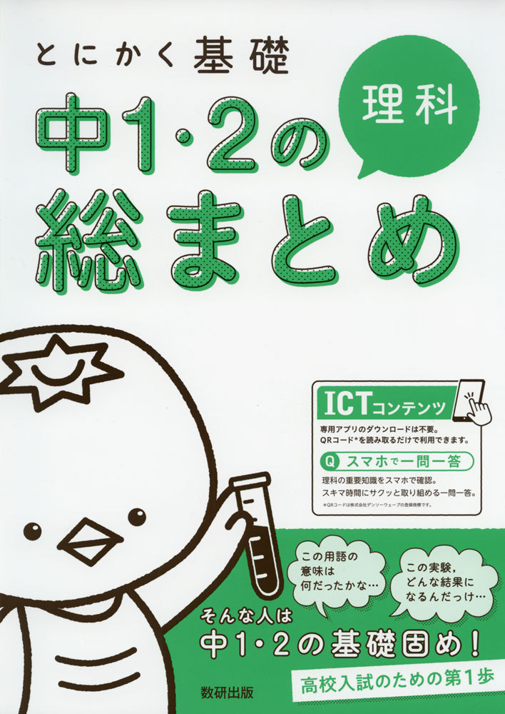 各単元の最重要ポイントを確認し、基本的な問題を何度も繰り返し解くことを通して、中1・中2理科の基礎を徹底的に固めることを目的として作られた問題集。QRコードを読み取るだけで利用できる一問一答クイズつき。