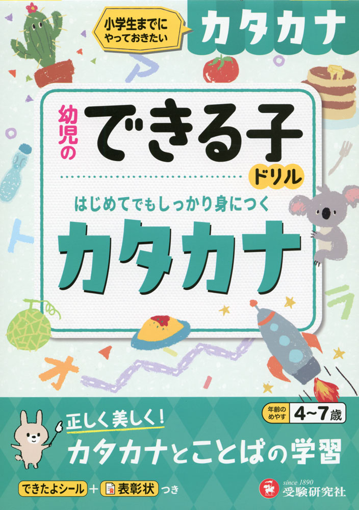 幼児が「カタカナ」を覚え、なぞったり書いたりしながら全てのカタカナが正しく美しく書ける、幼児のためのドリル。年齢のめやす:4〜7歳。