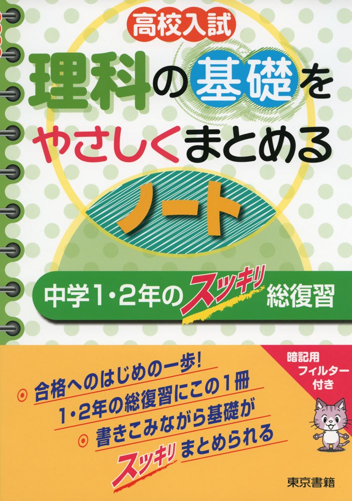 中学1・2年の内容の基礎基本をノート形式でまとめながら、しっかりと身につけていくことをねらいとして編集された教材。重要事項を簡潔でわかりやすい文章にまとめ、文章だけではわかりにくい部分は、「図解」を使ってていねいに解説。入試によく出る重要な実験や観察についても、実験や観察の方法や手順、結果などをわかりやすく整理して解説。