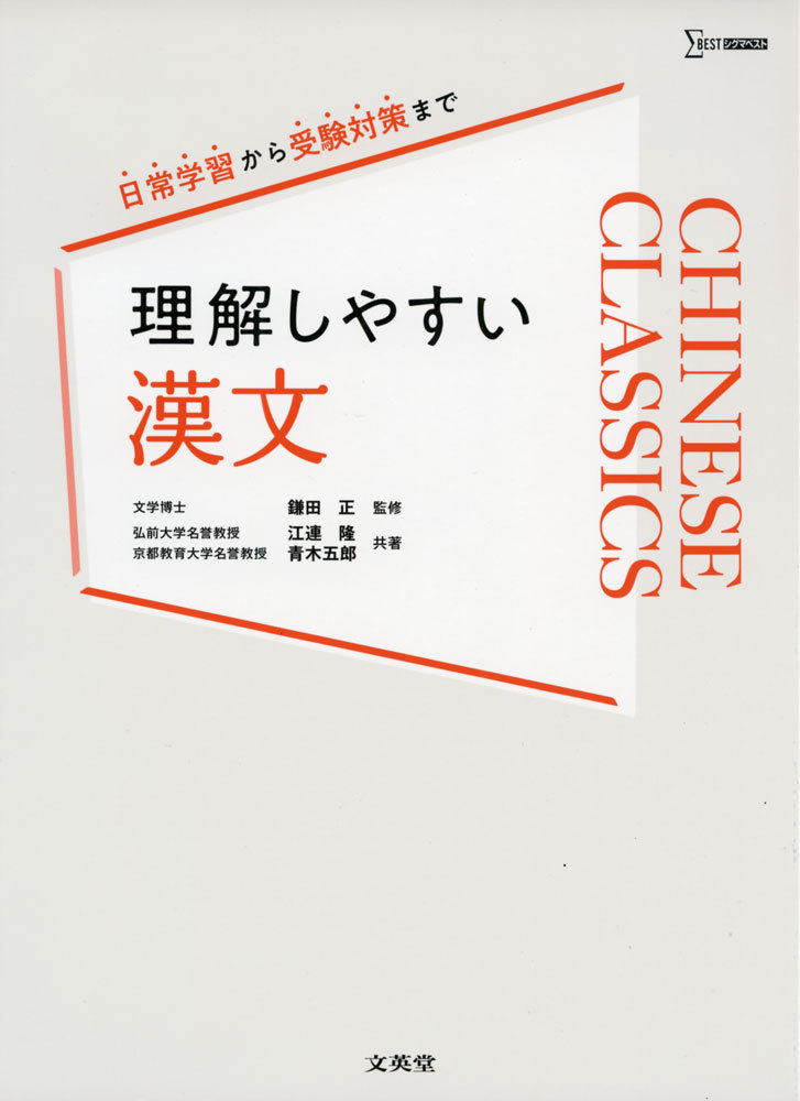 高校生のための基礎からの漢文学習を目標にした学習参考書。学習の要点や重要用語を、色文字や太文字・下線などで示しているので、重要ポイントがひと目でわかる。解説に合わせた豊富な図や写真を掲載。例文ごとに「練習問題」、各ジャンル末に「問題研究」を収録。重要な句法を体系的に学習できる別冊「重要句法集」付き。