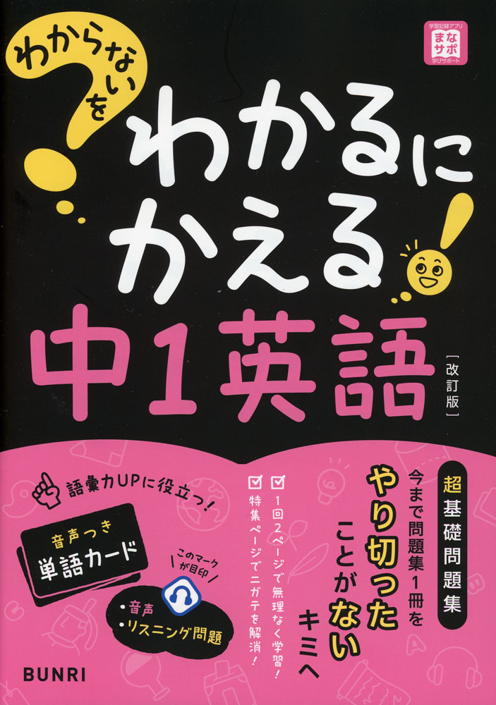 超基礎から1つ1つをやさしく解説。重要語句にはすべてふりがなつき。学習内容の定着を確認できる練習問題。リスニング対策もバッチリ。単語カードで語彙力もUP。