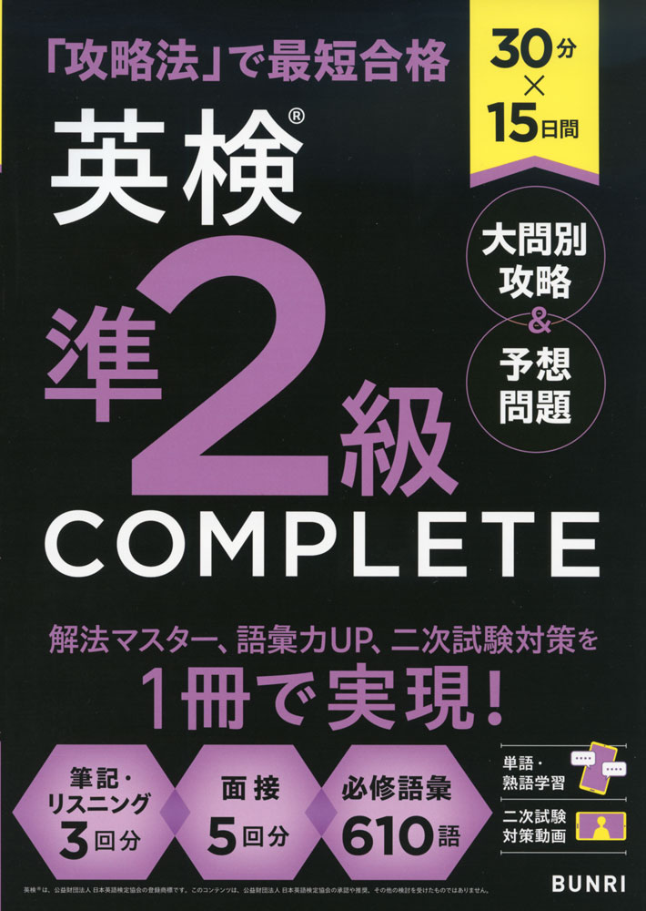 30分×15日間 英検 準2級 COMPLETE 大問別攻略&予想問題