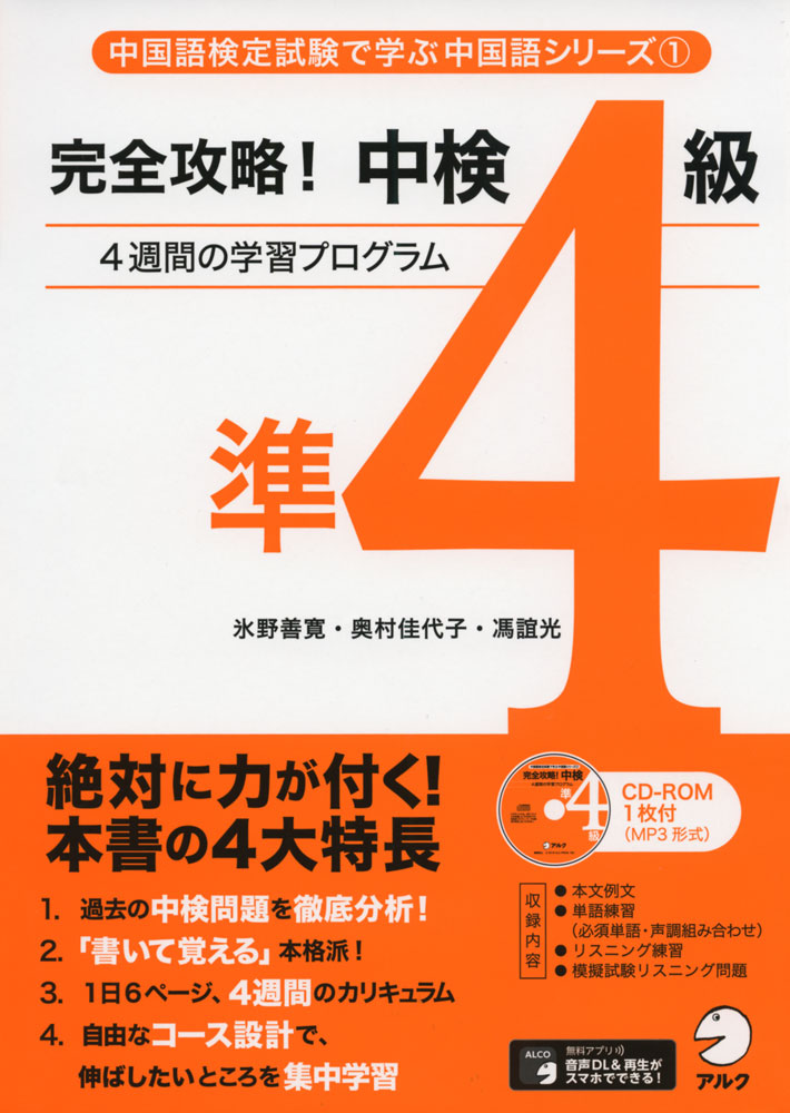 準4級の合格に必要な文法項目、単語を収録。「検定注目ポイント」で出題傾向を把握できる。筆記練習では検定試験の出題を意識しながらしっかり、書いて覚える問題を用意。単語練習では音を聞いて書くことでピンインをマスターする。「文法解説」「筆記練習」「リスニング練習」「単語練習」「漢字学習」はそれぞれ独立して学習することができる。MP3ファイルを収録したCD-ROM付き。