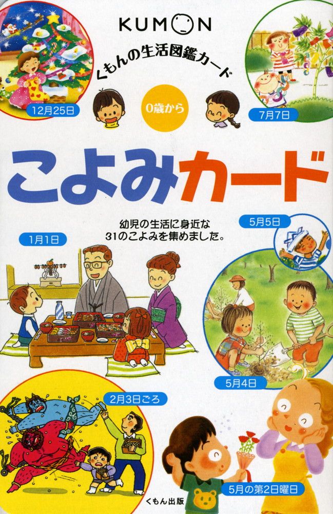 七夕、クリスマスなど、幼児に身近な年中行事をあわせて、31のこよみを収録。こよみに対する興味や関心を育てながら、その日の趣旨や由来を知ることで、生活知識を広げていく。