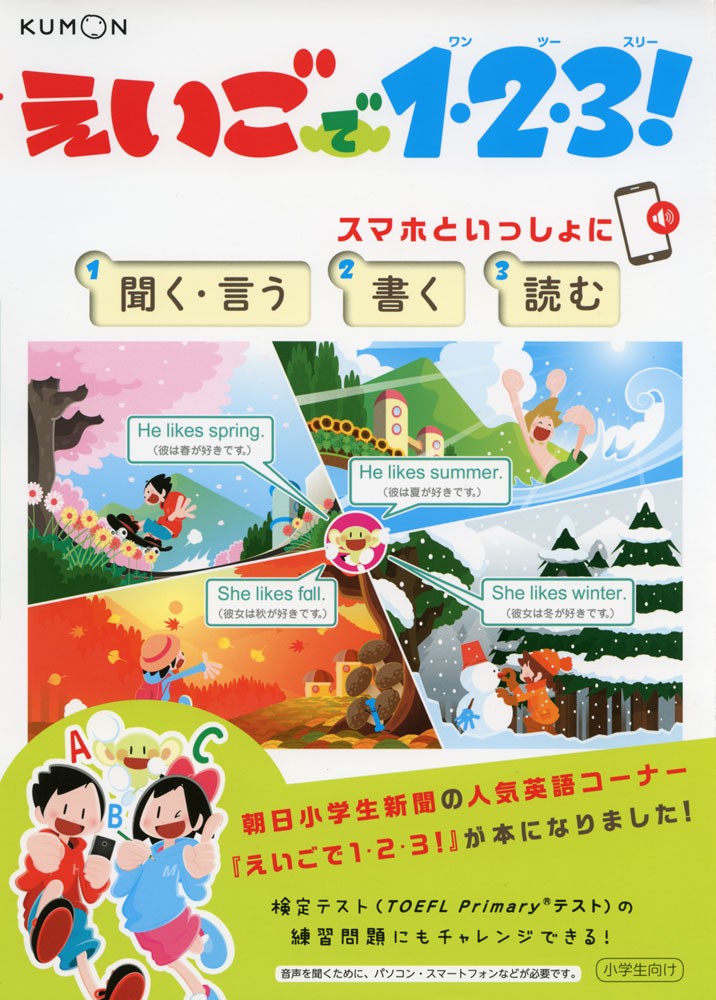 朝日小学生新聞の英語コーナー「えいごで1・2・3!」の、2018年3月から2019年3月まで連載された内容を再構成したもの。「聞く・言う」→「書く」→「読む」の3ステップで、はじめての英語もしっかり学べる。楽しいオールカラーの場面イラストで、英語表現がよくわかる。スマホやタブレット、パソコンで、音声が手軽に聞ける。