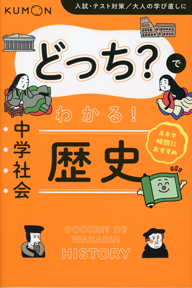 2択クイズで中学社会の歴史分野を短時間で確認・整理できる。オモテ面で「あれ?どっちだっけ?」となりがちな2択問題にクイズ感覚で挑戦。ウラ面では答えはもちろん、わかりやすいまとめ解説で周辺知識もしっかり定着。おまけの「ついでに!記述問題」に取り組めば、実戦的な記述力も身につく。