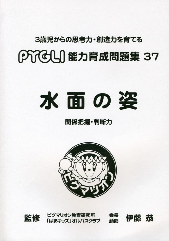 幼児教育法「ピグマリオンメソッド」を基にして作られた問題集。水面に映った姿を答える問題を収録。