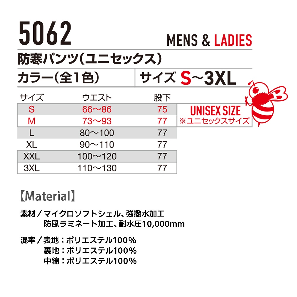 ・商品は5062防寒パンツのみ、上下セットではなく参考画像
