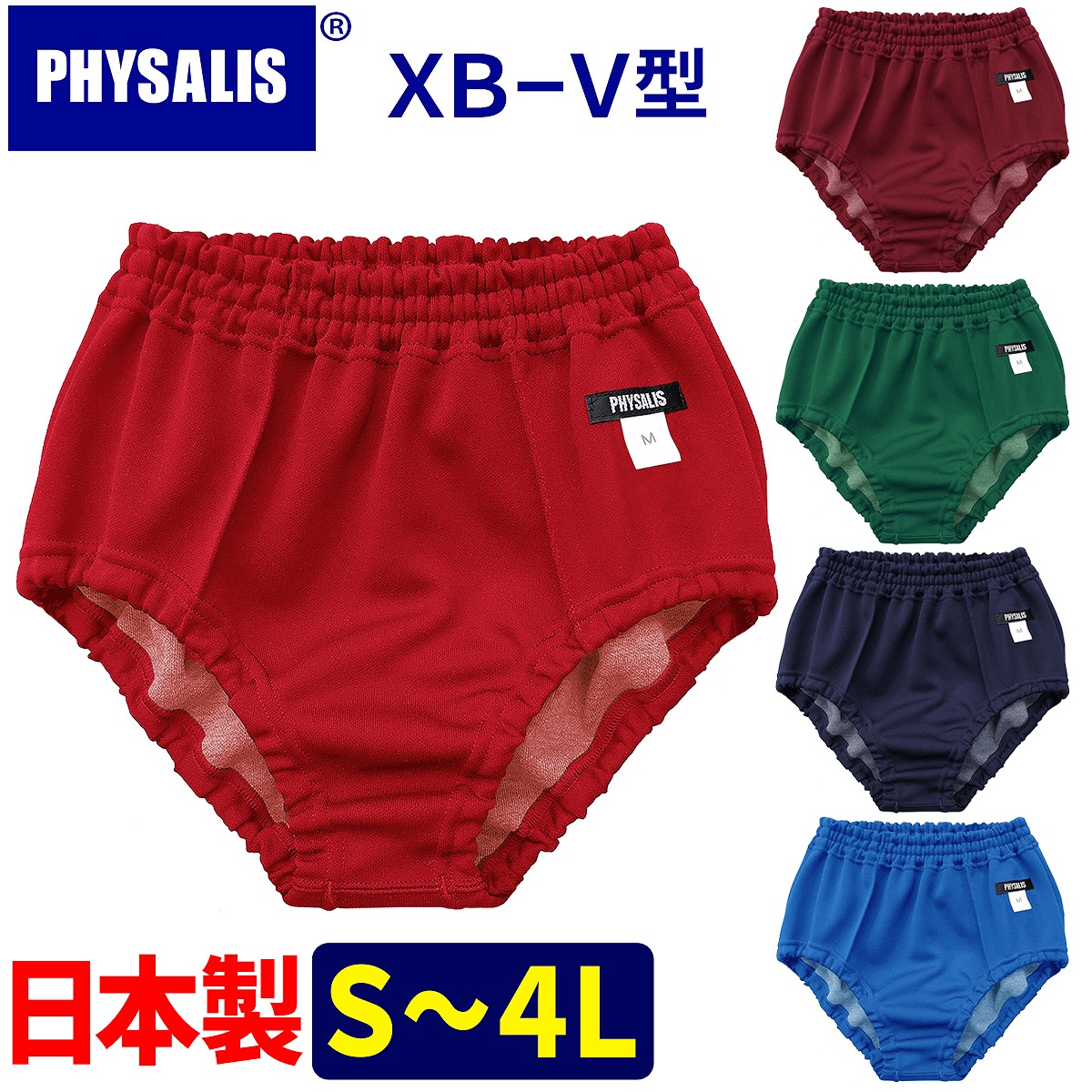 ブルマ 体操服 PHYSALIS V型 PTミドルカット スクールブルマー S〜4L レッド 赤 濃紺 エンジ グリン ブルー スポーツ専用品 送料無料