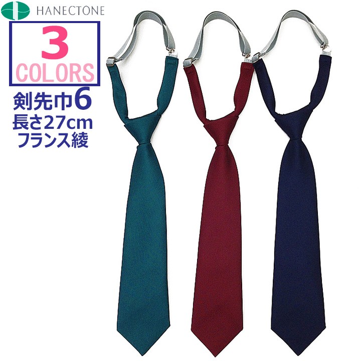 ハネクトーン ワンタッチネクタイ 無地 全3色 Yタイ ゴム金具式 剣先巾6 長さ27 ジュニア/中学生 成形ネクタイ