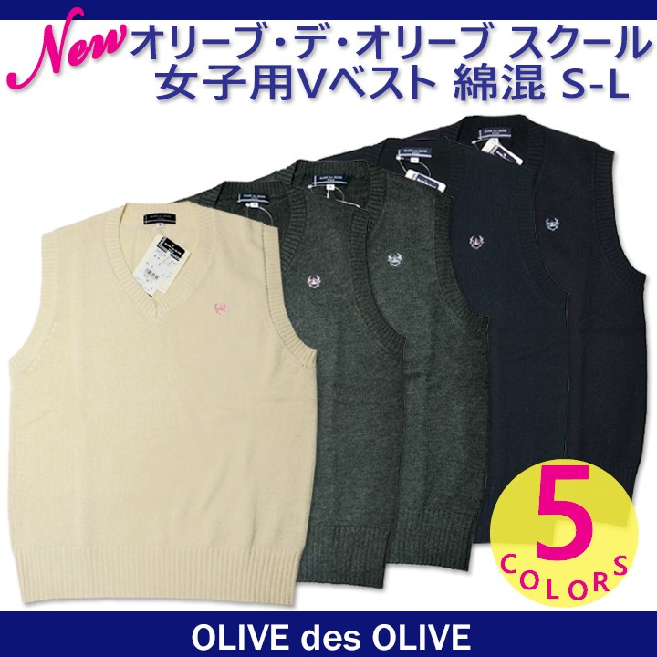 スクールベスト 女子用 2K90008 綿混 Vネック S-L オリーブ・デ・オリーブスクール
