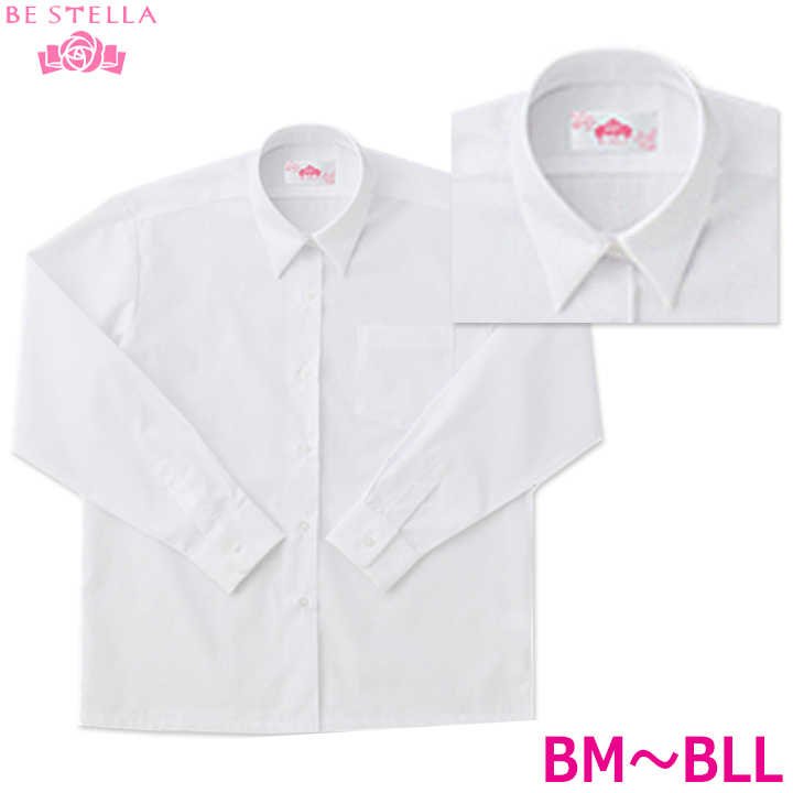 BE STELLAビーステラ スクールシャツ 女子用 長袖 BM-BLL 白 角衿 衿汚れ汗シミ黄ばみ解消 新防汚加工/形態安定 速乾ノーアイロン Bencougar