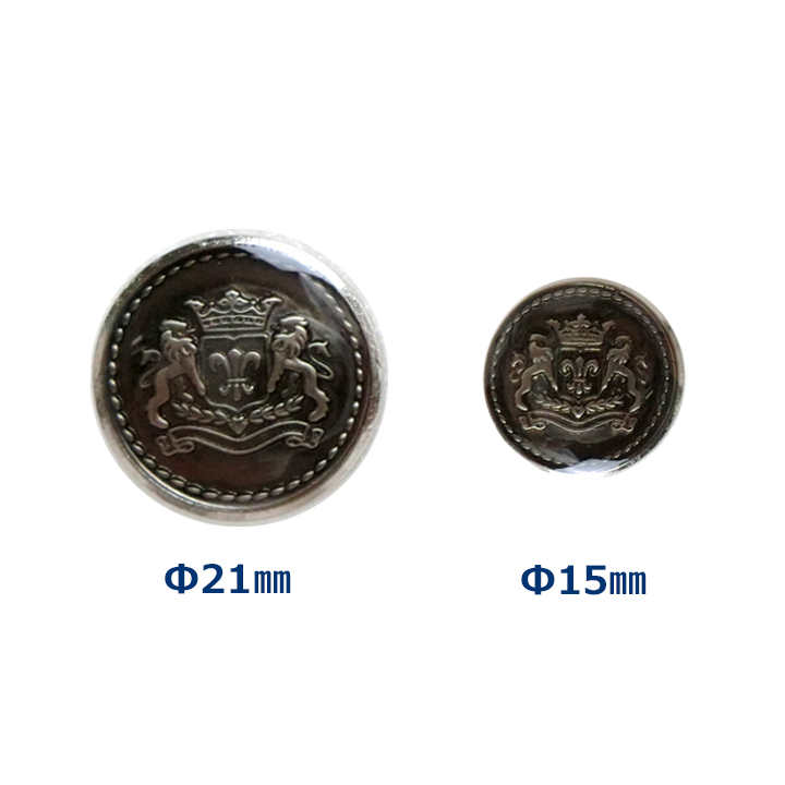 宝冠・フレアクレスト・獅子をモチーフにした紋章柄のガラスコート調メタルボタン