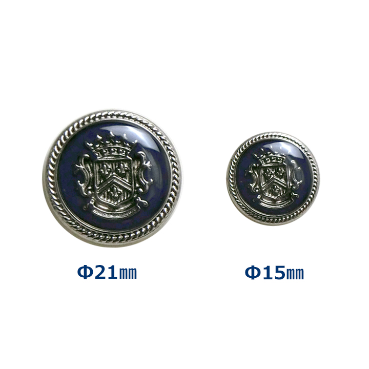 ブレザー用ボタンE-1【ガラス調 シルバー×ネイビー】紋章柄メタルボタン